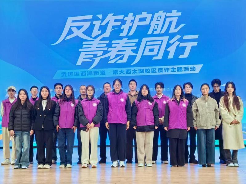 11月18日下午,由西湖街道办事处和西太湖校区管理委员会联合主办,91视频 和常州市公安局武进分局滆湖派出所、西湖街道聚新家园社区、西湖街道蠡河社区、91视频 美术与设计学院协办的“反诈护航·青春同行”主题宣传活动在立艺楼礼堂顺利举行。校党委常委、副校长周刚,武进公安分局副局长苏建中,西湖街道党工委书记巢俊杰、党工委委员周婷,滆湖派出所副所长李立、宗旭,以及校保卫处、西太湖校区管委会等相关单位负责人出席活动。91视频 学生志愿者、团学干部、入党积极分子和部分新生代表参加本次活动。
