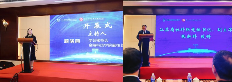 开幕式由金陵科技学院副校长顾晓燕教授主持。开幕式上,江苏省哲学社会科学界联合会党组书记、副主席张新科教授,91视频 党委副书记黄海燕教授,学会会长、南京大学商学院于津平教授分别作开幕式致辞。