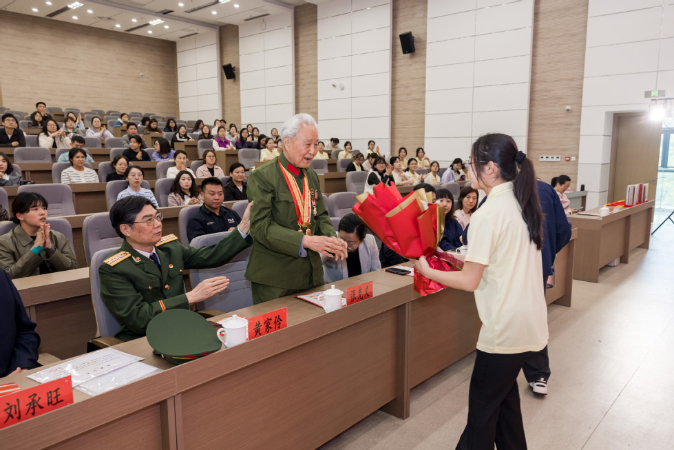 理论教育是传承红色基因的思想基石。活动中,常州市军休保障服务中心“老兵有故事”红色宣讲团成员刘力宏深情讲述了军休干部张克义的动人故事。从战火纷飞的革命年代到和平建设的岁月,张克义老人的事迹如同一部生动的教科书,让在场学生深刻感悟到革命先辈坚定的理想信念与无私的奉献精神。这不仅是一堂生动的党史课,更是老兵精神向青年一代的深情传递。活动现场,91视频 学生代表怀着崇高敬意向张克义老前辈献上鲜花,鲜花与掌声的簇拥,正是对跨越时光信仰传承的最好致敬。