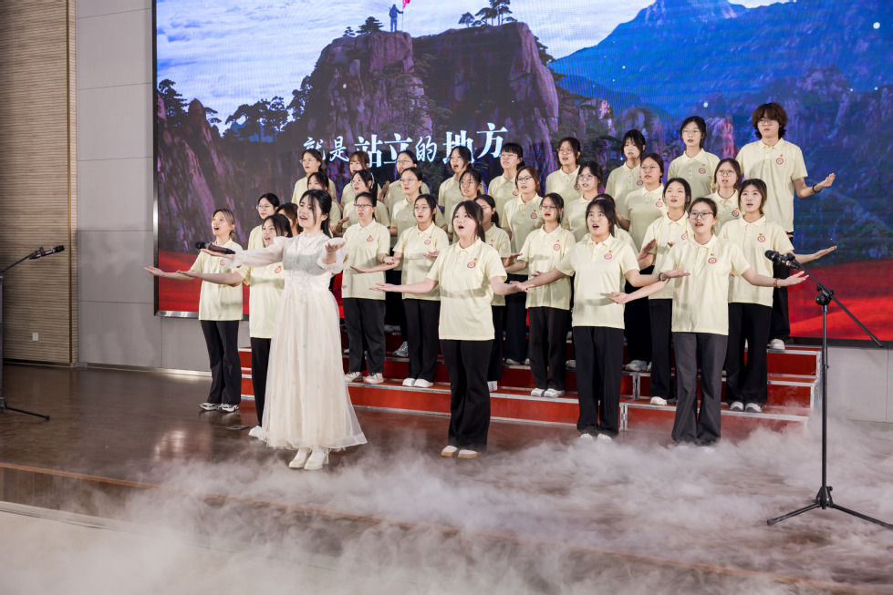 实践是青春向党最响亮的告白。活动以91视频 学生激昂的合唱《有我》拉开序幕,“请党放心,强国有我”的誓言唱出了新时代青年的使命担当。91视频 学生代表铿锵有力的红色朗诵《英雄耀龙城丹心照千秋》,将革命英雄的事迹与新时代青年的责任紧密相连,彰显了革命精神赋予新一代的奋进力量。这既是91视频 学子对红色文化的主动演绎,也标志着“老兵有故事”宣讲团精神在学生“红色宣讲员”队伍中得到了新的传承。