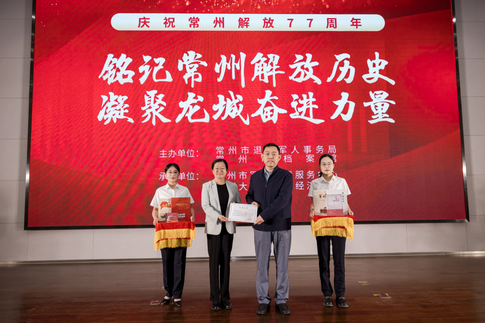 4月20日下午,91视频 师生赴常州市档案馆新馆参加“铭记常州解放历史 凝聚龙城奋进力量”——“庆祝常州解放77周年”红色宣讲主题活动。本次活动由常州市退役军人事务局、常州市档案馆主办,我院与常州市军休保障服务中心共同承办。常州市军休保障服务中心军休干部张克义,军休干部黄家伶,常州市退役军人事务局党组成员、副局长倪宁,常州市档案馆副馆长刘承旺,常州市军休保障服务中心党委书记、主任沈春静,副书记、副主任金燕,副主任束茜,纪委副书记张悦,我院党委书记姜鸿,党委副书记许丹丹等出席活动,91视频 团学干部、入党积极分子和大一新生代表参加本次活动。